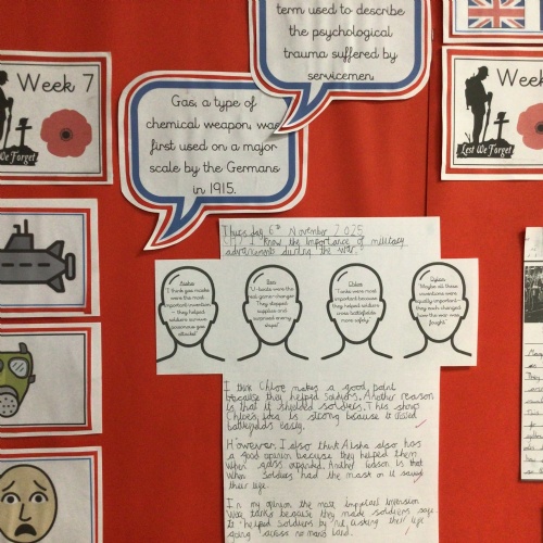 This term, children will be delving into our history enquiry relating to WW1. We are aiming to provide them with a wide range of experiences and learning that can give them a good understanding of the significance of WW1. This learning will promote rich discussions about how events during The Great War changed the world and shaped the future. Alongside this, their learning will be further applied within their English writing genres.