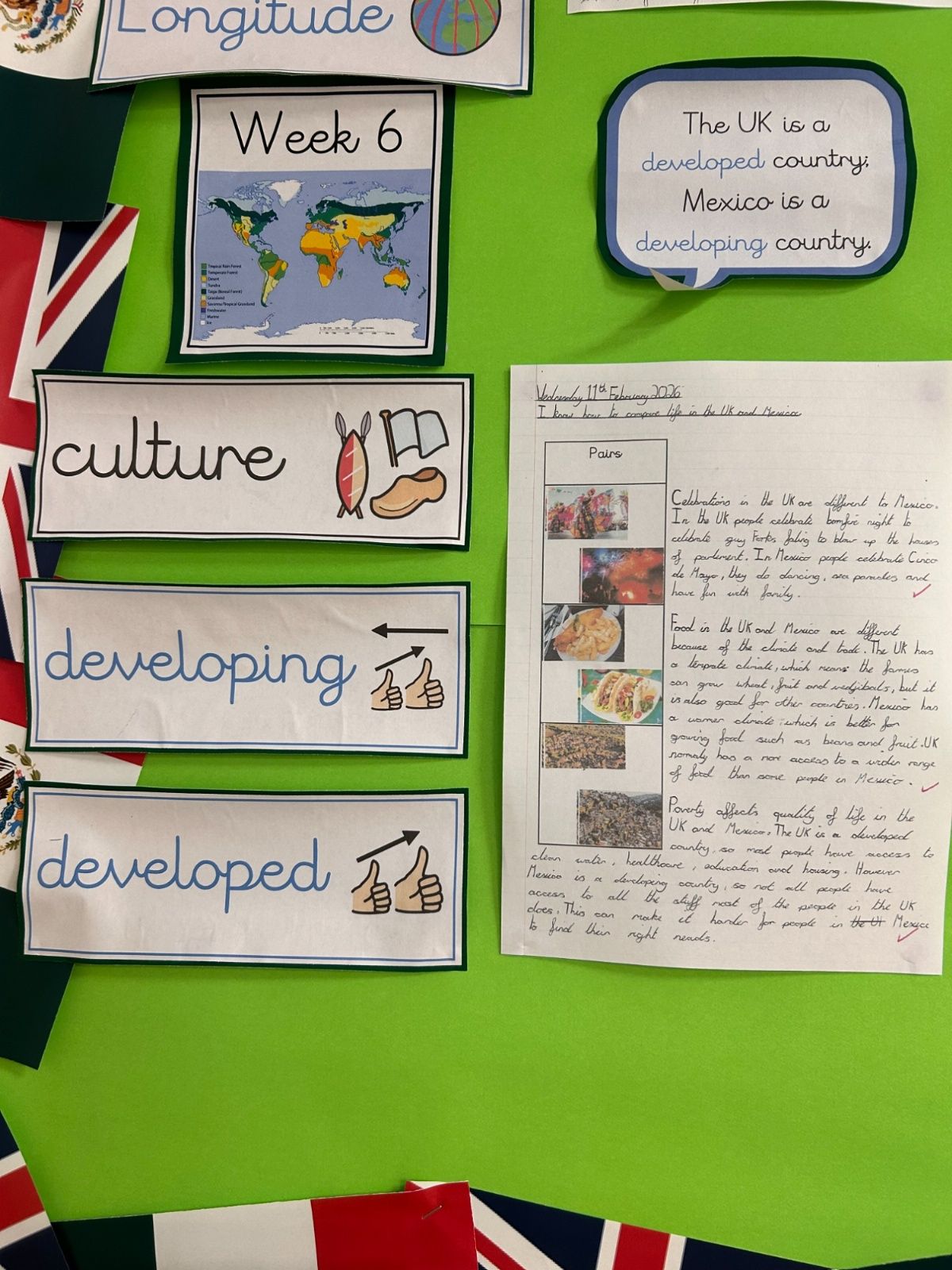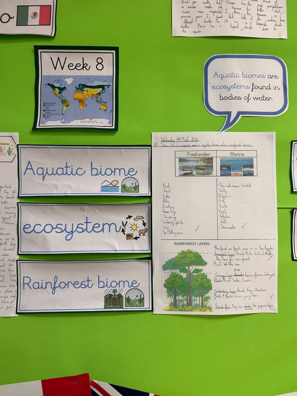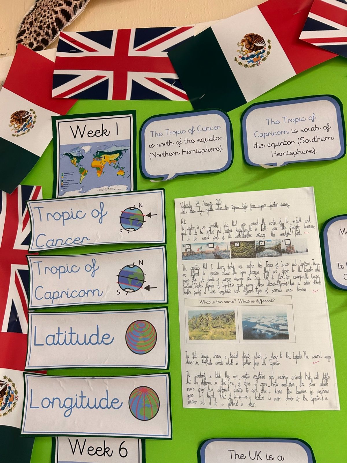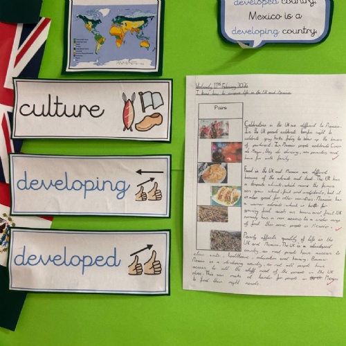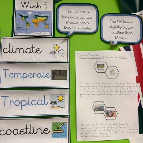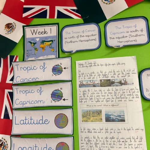 This Spring term, children will be exploring a geography-based enquiry focused on what affects the needs of living things in different places. Through the study of aquatic and rainforest biomes, pupils will investigate how climate, vegetation and physical features influence how plants, animals and humans survive around the world. They will develop their map skills and use data such as temperature and rainfall to compare places, with a particular focus on Mexico and the UK, identifying key similarities and differences in climate, landscapes and ways of life. Alongside this, children will consider the impact of human activity, including pollution and deforestation, and reflect on shared responsibilities for protecting the environment. Their learning will be enriched through immersive experiences, discussions, and fieldwork, and applied across a range of English writing genres, culminating in a high-quality double-page spread that showcases their geographical understanding and thoughtful reflections on global sustainability.
