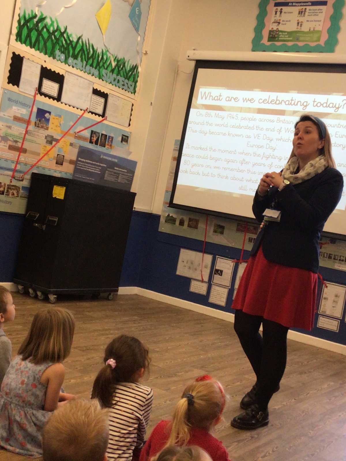 To mark VE Day, children came to school dressed in red, white, and blue to show their patriotic spirit. We held a special celebration assembly to remember the importance of peace and to honour the end of World War II in Europe. As part of the day, each child wrote what peace means to them on a note, which was placed in a school time capsule — a message of hope for future generations.